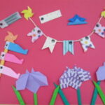 小さい子供さんと一緒に作る時は、花の折り方の手順5の広げるところや、手順8の少し残して折り返すところ等、一人で折るには難しい所もありますね。